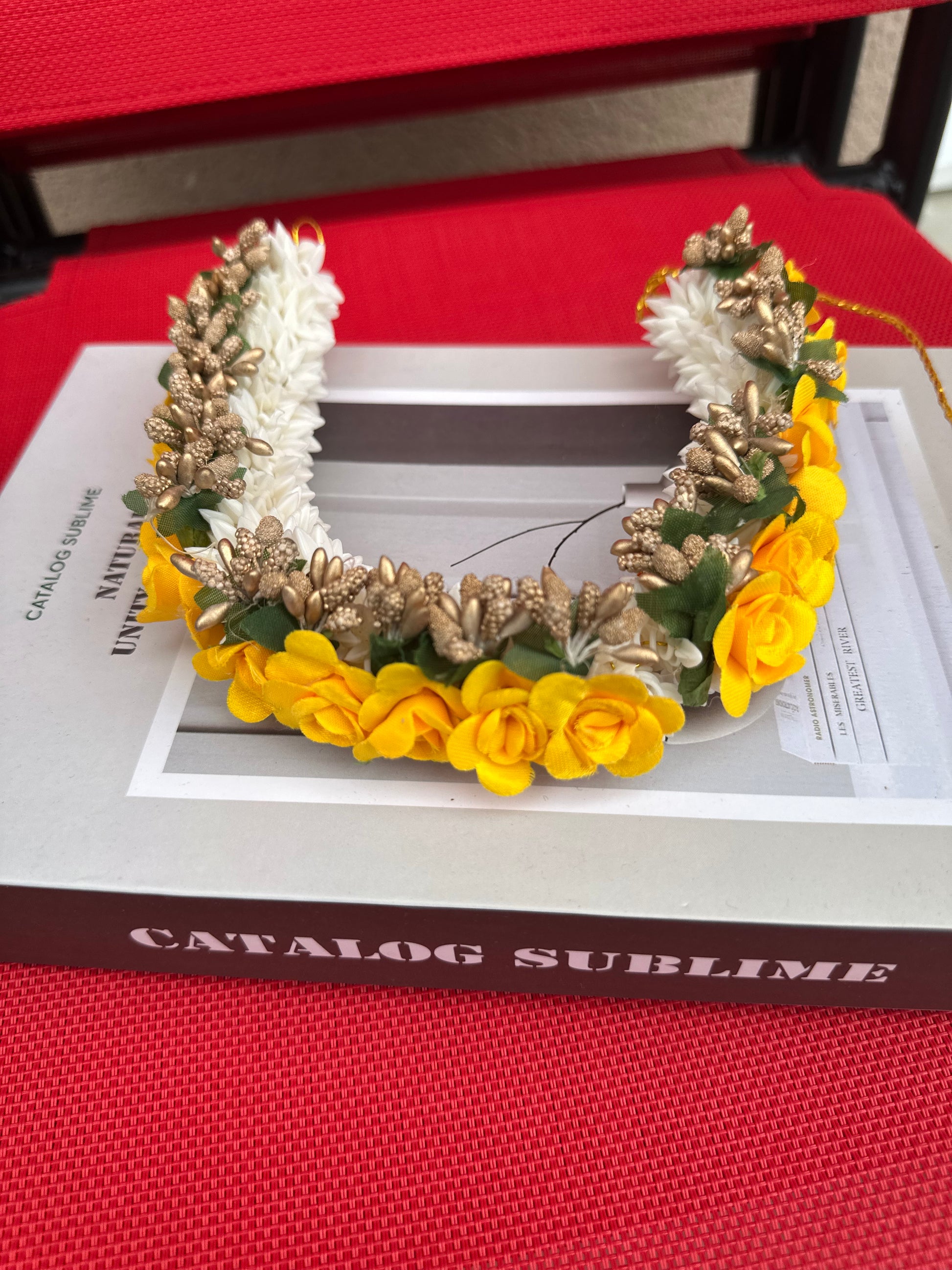 Cette magnifique fleur artificielle faite main est composée de roses blanches de qualité premium, sublimées par de bourgeons dorés et tissée avec soin dans des tiges aux tons verts, jaunes, rouges et roses. Délicatement parfumée au jasmin, elle apporte une touche florale raffinée et envoûtante.