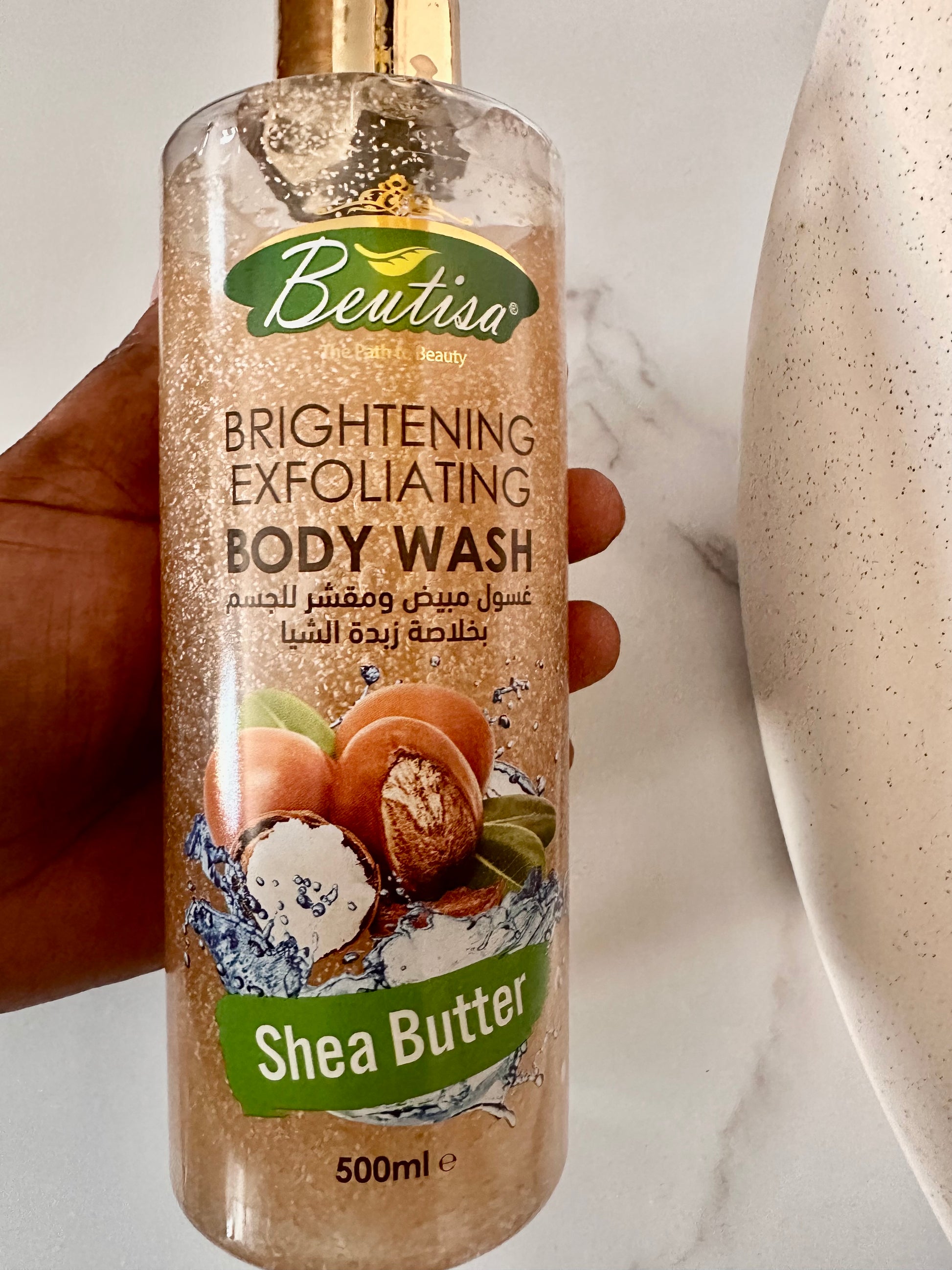 Plongez dans un moment de pur bien-être avec notre Gel Douche Exfoliant au Beurre de Karité, une formule nourrissante enrichie en vitamine E, huile de jojoba et exfoliants naturels.